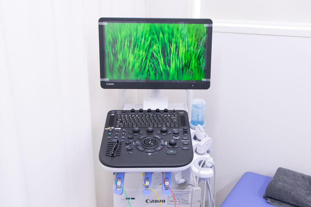 プローブという器具を体に当て超音波を出し跳ね返ってきた音波(反射波)を画像化します。
