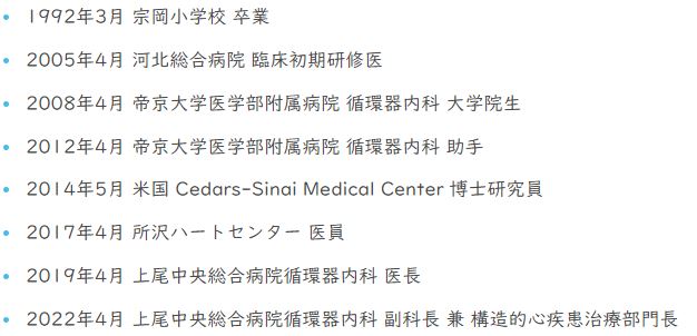 私は、心臓病で苦しむ患者さんを救いたいという気持ちから内科、循環器内科の道に進み、数え切れない多くの内科疾患、生活習慣病や心臓病の患者さんと向き合ってきました。しかし、集中治療室で重篤な患者さんと接するうちに「大病で生活が一変する前になんとか救ってあげたい」と考えるようになり、地元の地域診療に貢献したい思いが強くなりました。