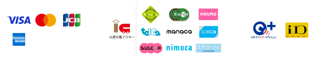当院では現金の他、各種クレジットカード(JCB、VISA、AMEX、MASTER)、交通系IC、クイックペイでのお支払いが可能です。